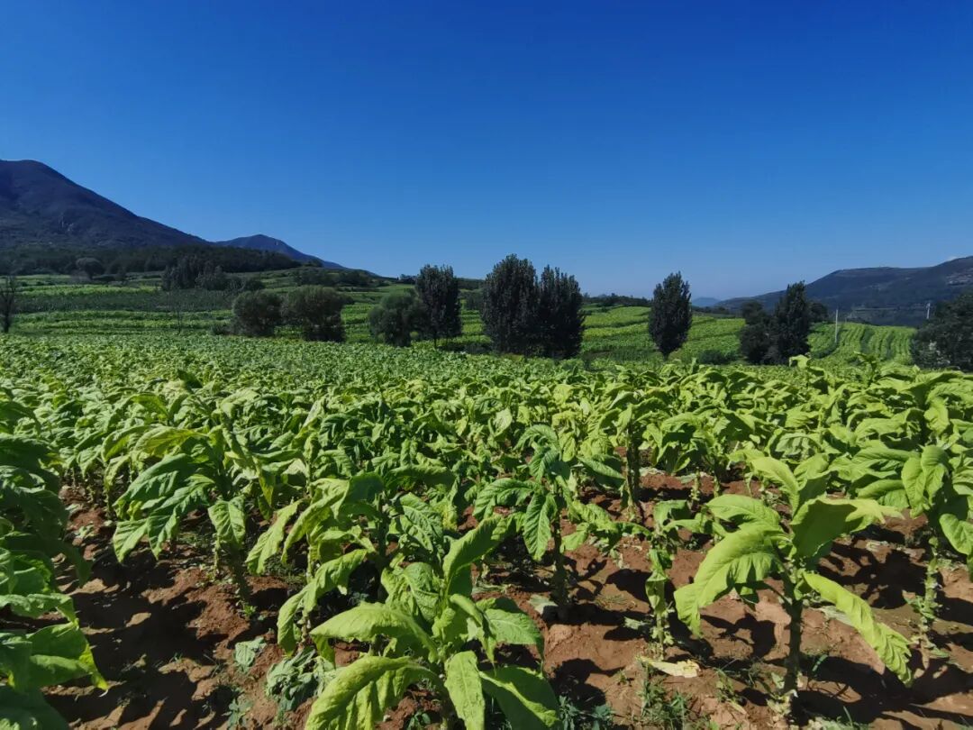 蓝天白云下、青山绿水间,纵横沟壑的烟田呈梯田状分布。坡头乡土岭村1000余亩烟田犹如一片绿海,烟农们奔走在田间地头除草、补种烟苗,忙得不亦乐乎,一棵棵长势喜人的烟叶即将成为烟农们的摇钱树。